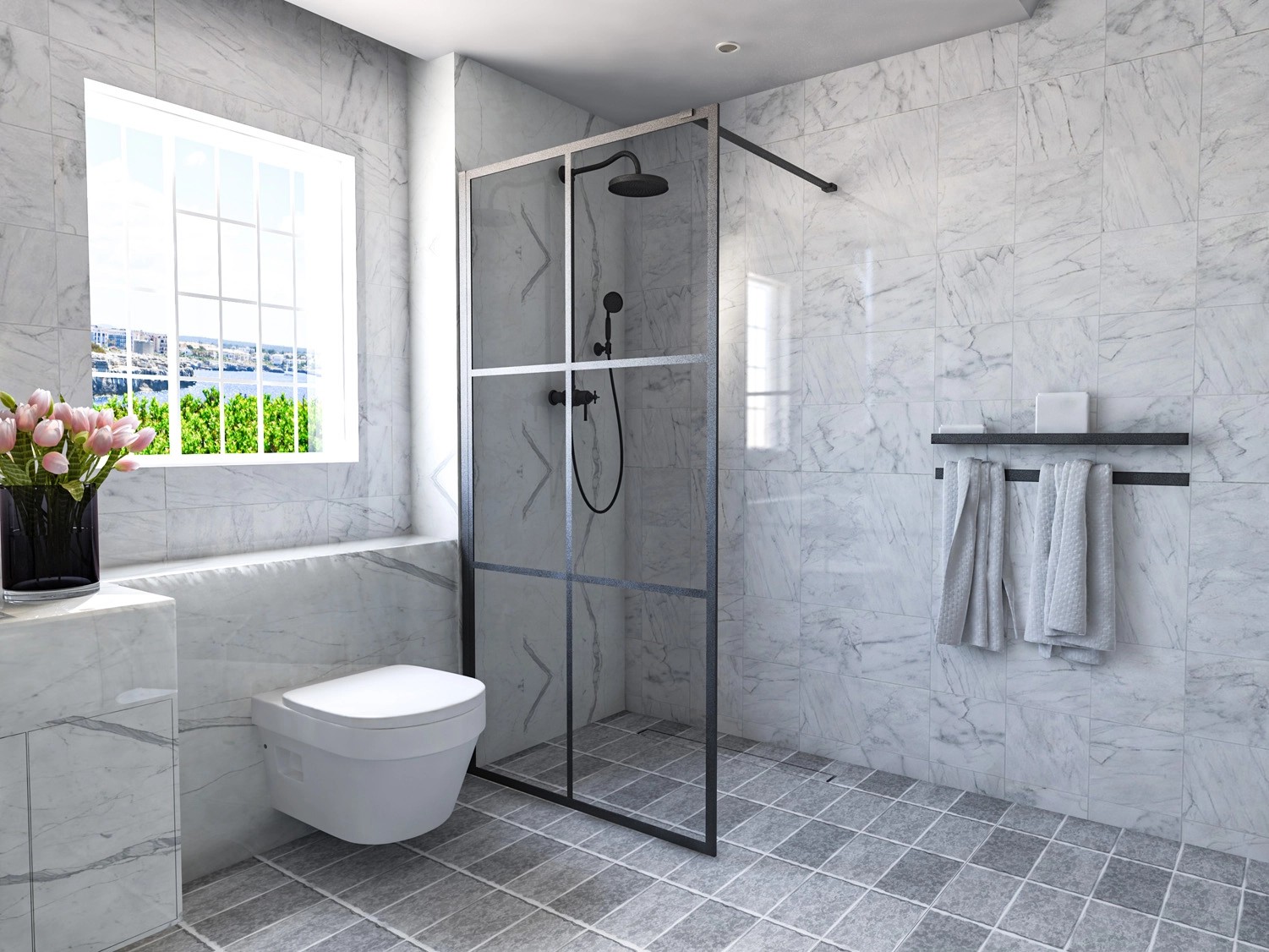 Stwórz swoją własną oazę relaksu i stylu w łazience dzięki kabinie prysznicowej walk-in VIVA od marki Kabi. Ta elegancka i funkcjonalna kabina doskonale wpisuje się w trendy nowoczesnego designu, oferując praktyczne rozwiązania w połączeniu z wyjątkowym stylem. Jej wykończenie w eleganckim, czarnym kolorze stanowi wyraz luksusu i szyku, który subtelnie podkreśla charakter każdej nowoczesnej łazienki.