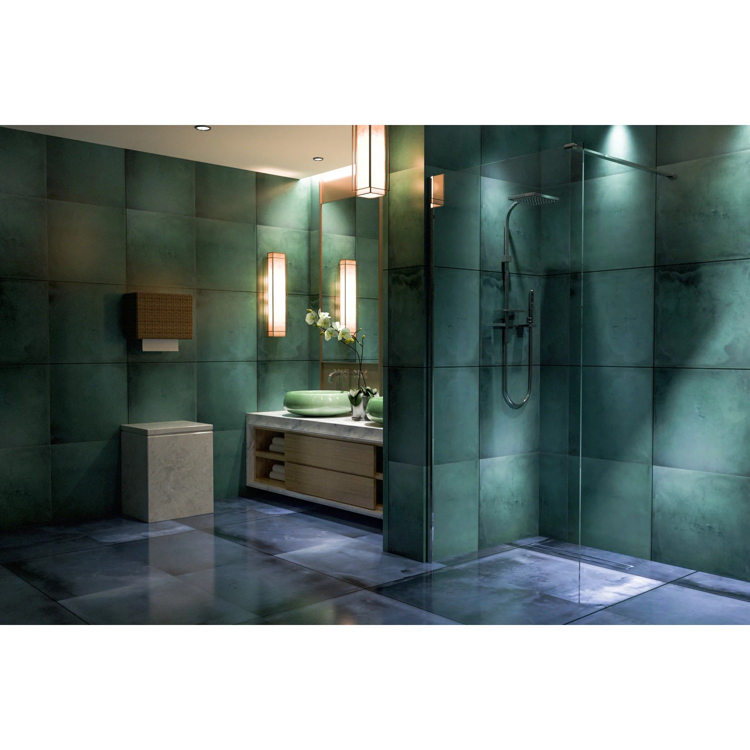 Profile w kolorze błyszczącego chromu nadają ściance prysznicowej luksusowy i nowoczesny wygląd, który doskonale pasuje zarówno do klasycznych, jak i współczesnych aranżacji łazienkowych. Chromowane wykończenie profili nie tylko podkreśla elegancki charakter ścianki, ale także gwarantuje jej solidność i długowieczność. Powłoka Nano Glass zastosowana na powierzchni szkła tworzy niewidzialną barierę ochronną, która zapobiega osadzaniu się wody i zanieczyszczeń. Dzięki temu utrzymanie ścianki w czystości jest niezwykle proste, a szkło przez długi czas pozostaje krystalicznie czyste.