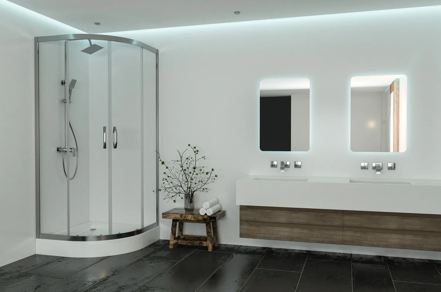 Kabiny wykonano z wytrzymałego szkła hartowanego o grubości 5 mm, a ich konstrukcja oparta jest na cienkich, eleganckich profilach, dostępnych w dwóch wersjach kolorystycznych: chrom oraz czarny mat. To uniwersalna kolorystyka, która dobrze współgra z większością łazienkowych aranżacji.