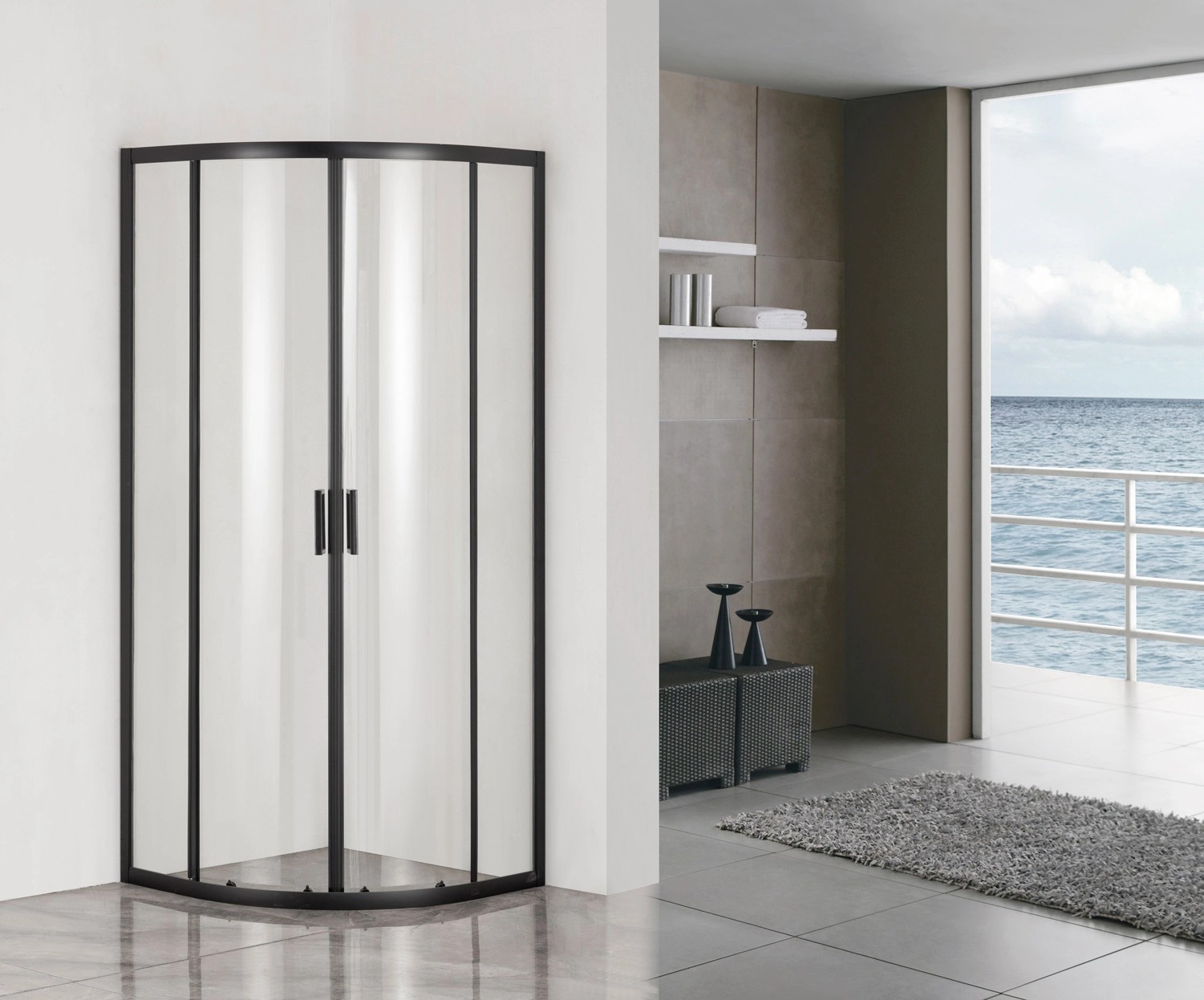 Kabina półokrągła Luftiga 80 czarna bez brodzika 80x80x185
