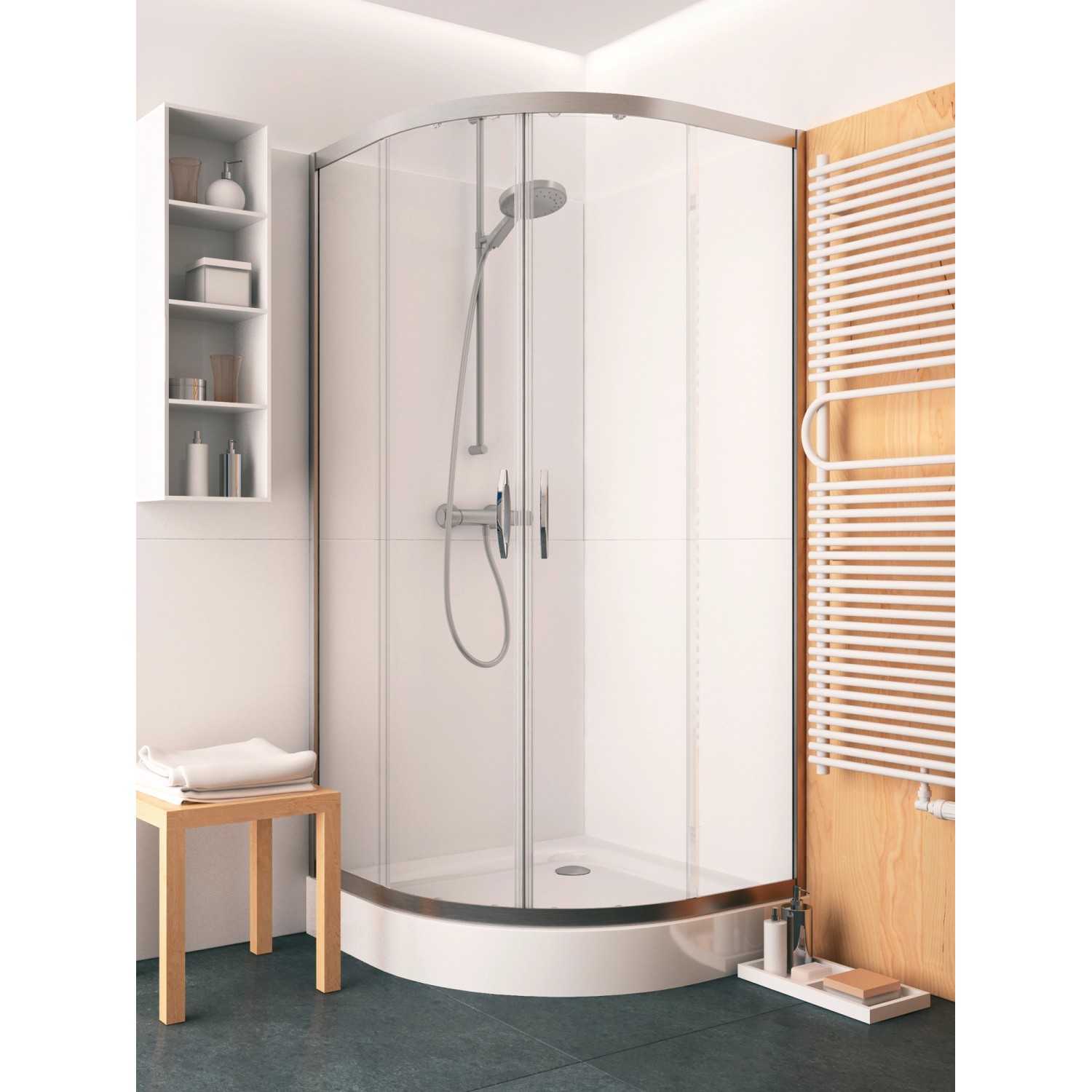 Kabina prysznicowa Koło to doskonałej jakości półokrągła kabina prysznicowa wykonana z hartowanego bezbarwnego szkła. Sprzedawana w komplecie z brodzikiem ze zintegrowaną obudową i zamontowanymi nogami. W zestawie znajduje się również syfon. Kabina prysznicowa Perline Koło perfekcyjnie łączy w sobie estetykę wykonania i funkcjonalność. Wysokiej jakości materiały użyte do jej produkcji gwarantują długotrwałą eksploatację kabiny.