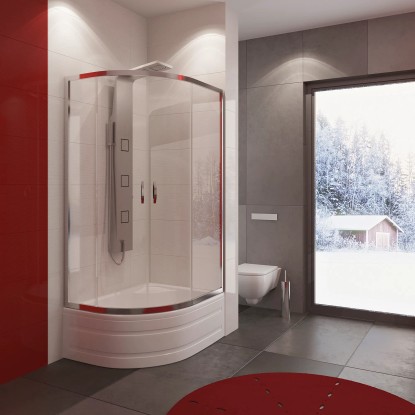 Jest to doskonałej jakości asymetryczna uniwersalna (możliwość montażu prawo lub lewostronnego) kabina prysznicowa wykonana z hartowanego, bezbarwnego szkła.