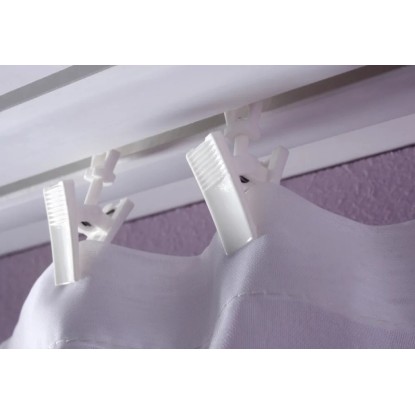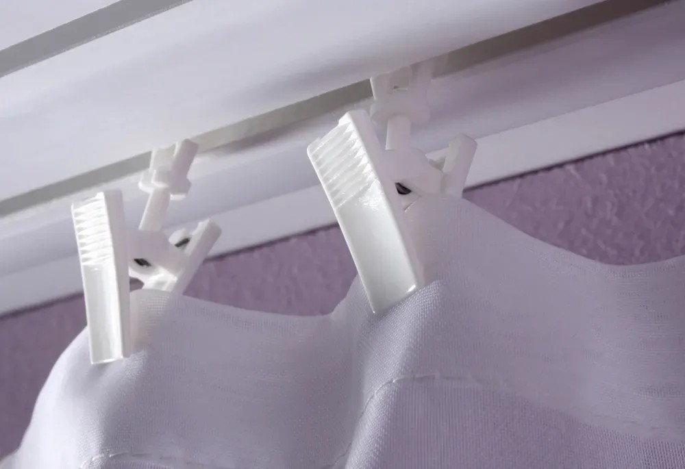 Klamerki wykonane z wysokiej jakości tworzywa sztucznego służą do zawieszania firan i zasłon. Przeznaczone są do montażu na szynach sufitowych.