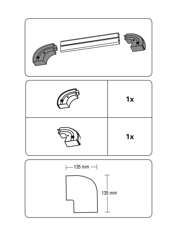 Łuk służy do zakończenia biegu szyny sufitowej.