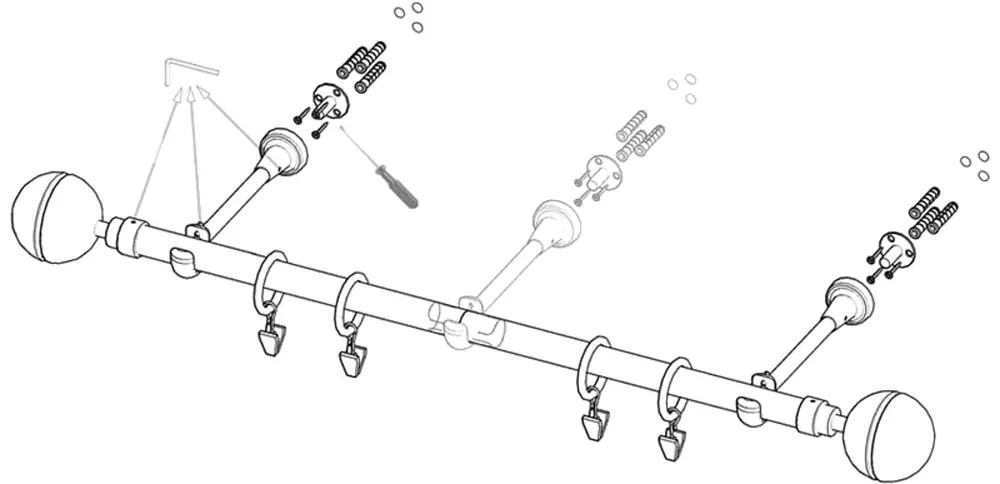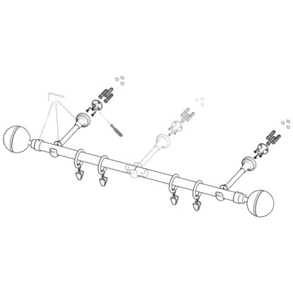 Ozdobny, metalowy karnisz do zasłon lub firanek. Wysokiej jakości, solidne wykonanie karnisza zapewnia wyjątkową wytrzymałość oraz wysoce estetyczny wygląd, dzięki czemu karnisz stanowi nie tylko funkcjonalny, ale również elegancki element wykończenia wnętrz. W zestawie: drążek, wsporniki, zakończenia, ciche kółka z żabką.