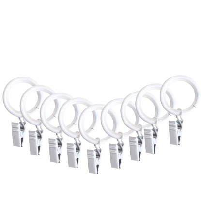 Zestaw 10 kółek metalowych z żabką dedykowany jest do drążków o średnicy 16 mm i 19 mm. Kółka z żabką umożliwiają upięcie zasłon lub firan na drążku karnisza. Są wyposażone w silikonową wkładkę, która zapewnia bezszelestne i łatwe przesuwanie tkanin. Należy łączyć je z innymi elementami karniszy w elementach z serii Fusion.