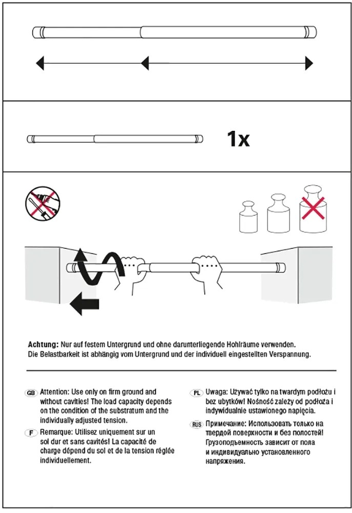 Funkcjonalny i solidny drążek, rozporowy o regulowanej długości, który może być zainstalowany wewnątrz pomieszczeń, we wnękach o szerokości od 90 do 140 cm. Drążek jest solidnie wykonany ze stali, lakierowany proszkowo na kolor czarny. Doskonała powłoka lakiernicza zapewnia długie użytkowanie bez śladów zużycia.