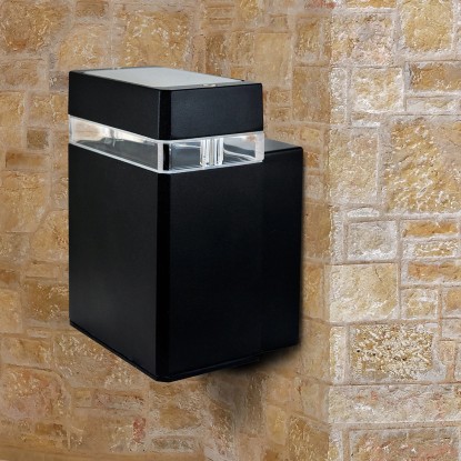 Prostokątny kinkiet pojedyńczy wykonany z aluminium w kolorze czarnym, osłonięty przezroczystym kloszem. Doskonale sprawdzi się jako oświetlenie tarasu, ogrodu, balkonu. Nowoczesny design, prosta forma i uniwersalna kolorystyka sprawią, że będzie wyglądał świetnie na elewacji przy drzwiach wejściowych.