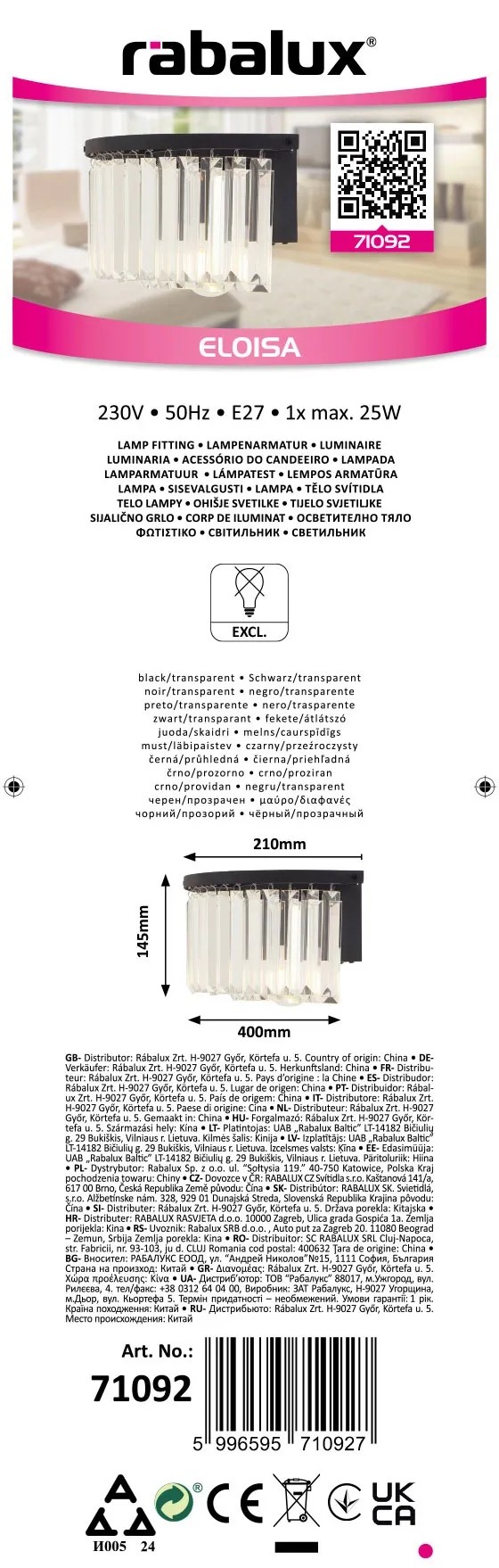 Rabalux Kinkiet Eloisa 1xE27 max. 25W kryształowy