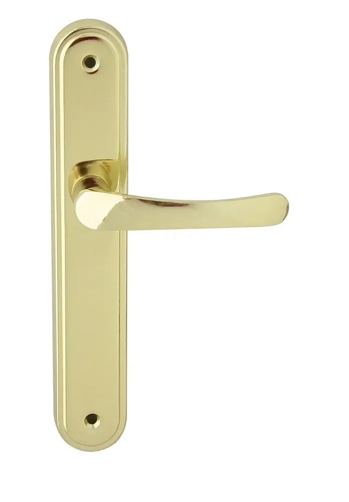 Jest to klamka o zaokrąglonej formie osadzona w prostokątnym szyldzie.