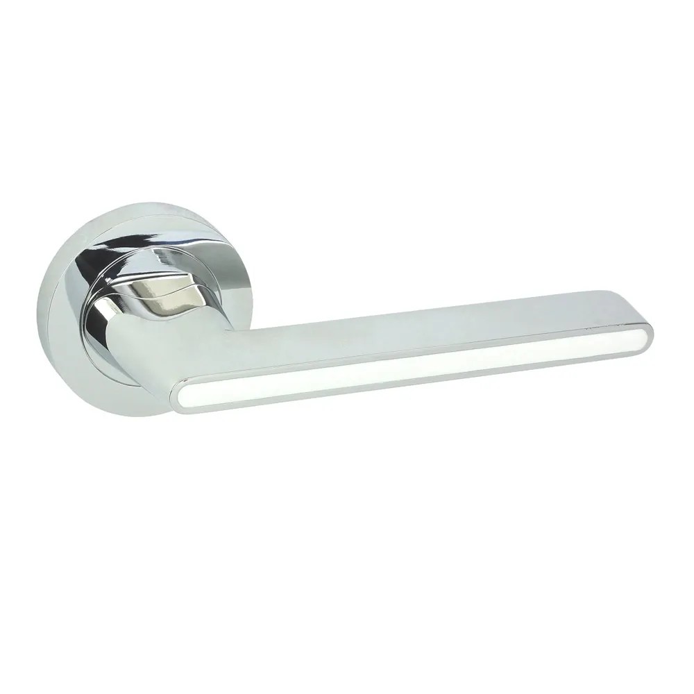 Klamka Onyks na rozecie biały chrom, firmy Domino.