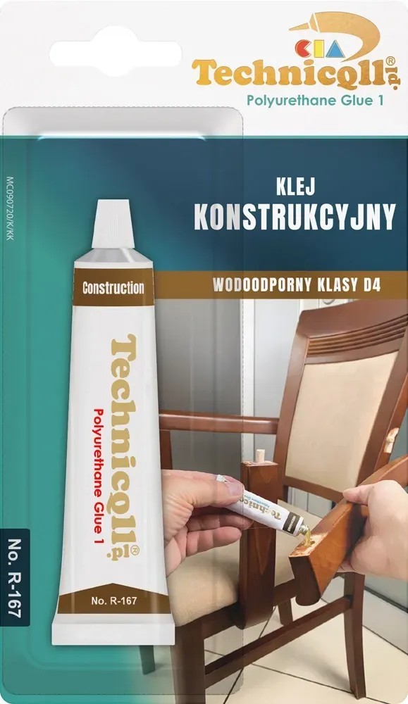 Klej konstrukcyjny marki Technicqll służy do klejenia przedmiotów w gospodarstwie domowym, przemyśle i motoryzacji. Klei wszystkie materiały poza PP, PE i PTFE. Posiada wysoką klasę wodoodporności D4, jest stosowany w naprawach, gdzie wymagana jest bardzo wysoka siła połączenia. Podczas wiązania zwiększa swoją objętość dzięki czemu wypełnia wolne przestrzenie i szczeliny. Odporny na zmienne temperatury i czynniki chemiczne. Można go malować, klei wilgotne elementy, jest odporny na wstrząsy, pękanie.