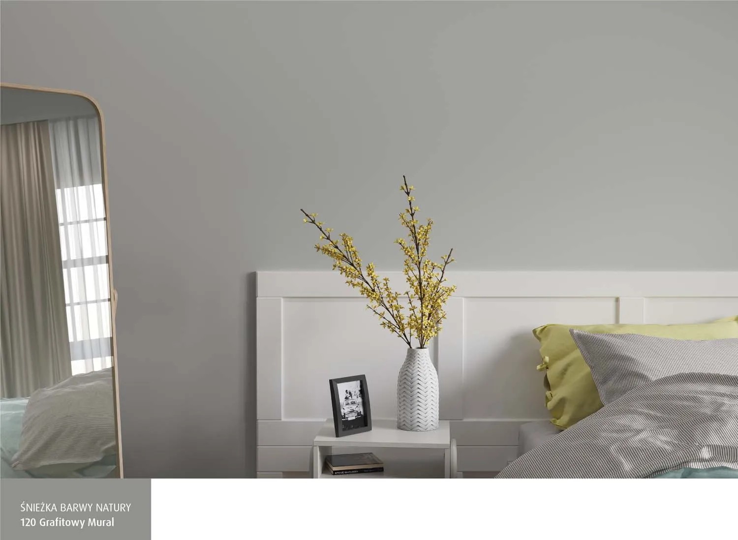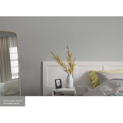 Emulsja marki Śnieżka z serii Barwy Natury w kolorze grafitowy mural to wysokiej jakości farba lateksowa. Charakteryzuje ją trwałość kolorów i bardzo dobre krycie. Na malowanej powierzchni pozostawia matową powłokę, zapewniającą oddychanie ścian, odporną na wielokrotne zmywanie i szorowanie na mokro. Szczególnie polecana jest do dekoracyjno-ochronnego malowania tynków wapiennych i cementowo-wapiennych, podłoży cementowych, betonowych, gipsowych, drewnianych i drewnopochodnych, cegły, kamienia i płyt gipsowo-kartonowych wewnątrz pomieszczeń. Jest wysoce wydajna, 1 l pozwala na pomalowanie do 14 m2 powierzchni.