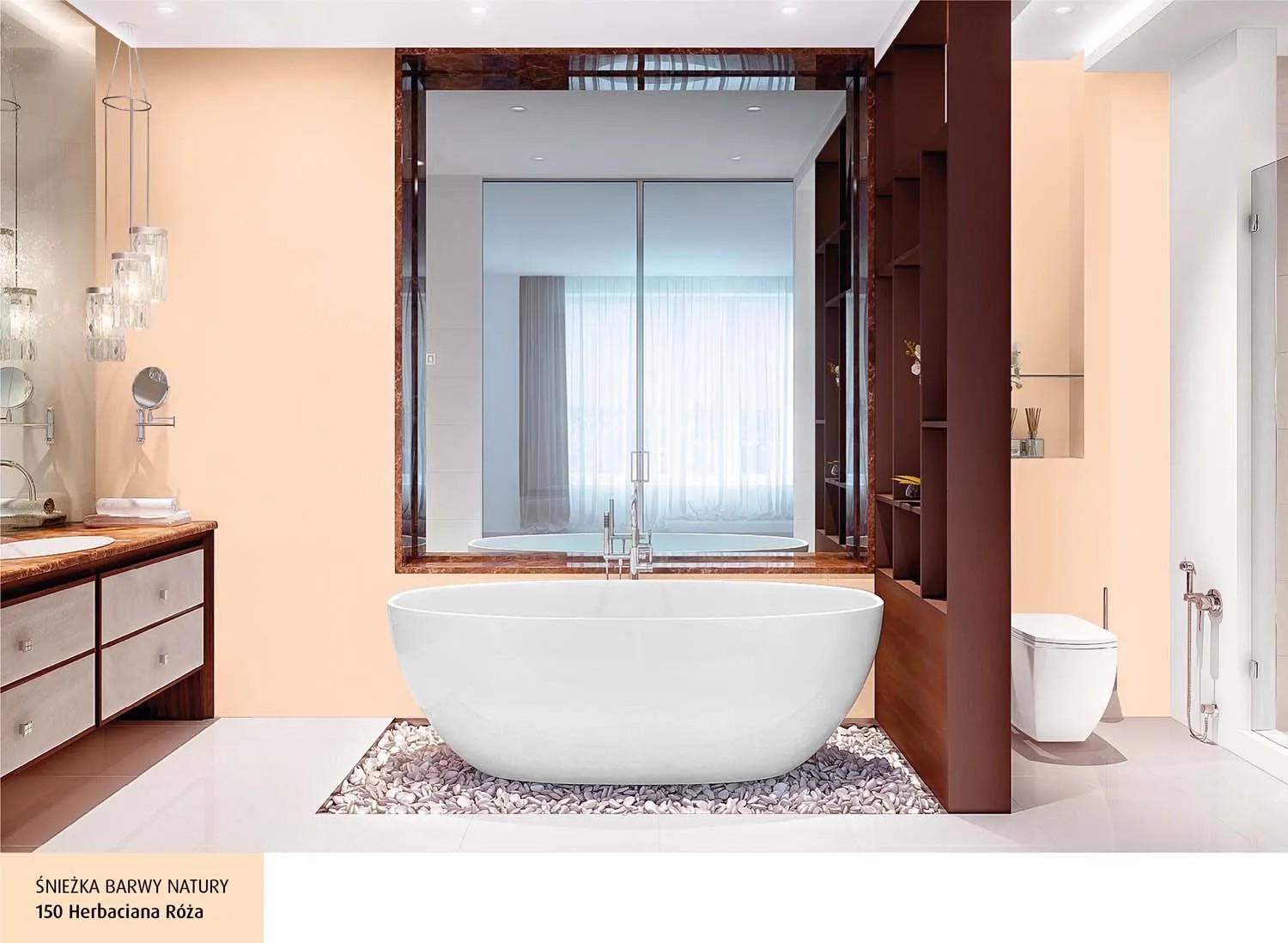 Emulsja marki Śnieżka z serii Barwy Natury w kolorze herbaciana róża to wysokiej jakości farba lateksowa. Charakteryzuje ją trwałość kolorów i bardzo dobre krycie. Na malowanej powierzchni pozostawia matową powłokę, zapewniającą oddychanie ścian, odporną na wielokrotne zmywanie i szorowanie na mokro. Szczególnie polecana jest do dekoracyjno-ochronnego malowania tynków wapiennych i cementowo-wapiennych, podłoży cementowych, betonowych, gipsowych, drewnianych i drewnopochodnych, cegły, kamienia i płyt gipsowo-kartonowych wewnątrz pomieszczeń. Jest wysoce wydajna, 1 l pozwala na pomalowanie do 14 m2 powierzchni.
