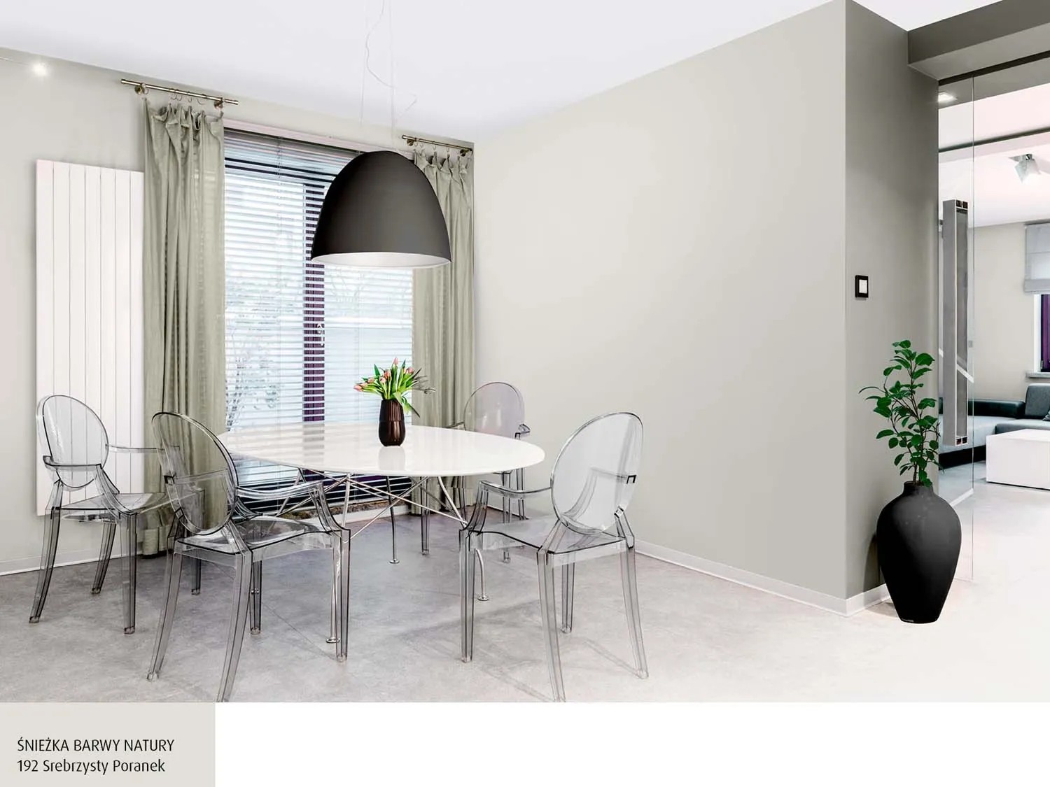 Emulsja marki Śnieżka z serii Barwy Natury w kolorze srebrzysty poranek to wysokiej jakości farba lateksowa. Charakteryzuje ją trwałość kolorów i bardzo dobre krycie. Na malowanej powierzchni pozostawia matową powłokę, zapewniającą oddychanie ścian, odporną na wielokrotne zmywanie i szorowanie na mokro. Szczególnie polecana jest do dekoracyjno-ochronnego malowania tynków wapiennych i cementowo-wapiennych, podłoży cementowych, betonowych, gipsowych, drewnianych i drewnopochodnych, cegły, kamienia i płyt gipsowo-kartonowych wewnątrz pomieszczeń. Jest wysoce wydajna, 1 l pozwala na pomalowanie do 14 m2 powierzchni.