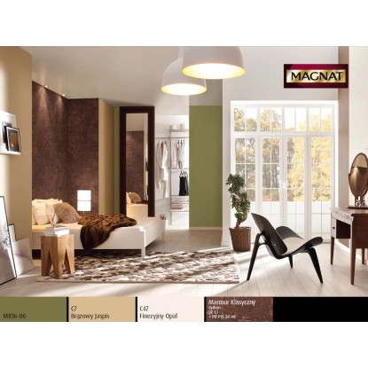 Emulsja Magnat Ceramic w kolorze brązowy jaspis to ceramiczna farba trzeciej generacji marki Śnieżka. Unikalna formuła emulsji Magnat daje jej ponadprzeciętne parametry odporności na wielokrotne zmywanie i szorowanie na mokro. Do czyszczenia można używać dezynfektantów, gdyż emulsja ta jest odporna na środki czyszczące. Powierzchnie pokryte tą farbą są plamoodporne, nie absorbują zabrudzeń i trudnych plam np. z wina, kawy, ketchupu, oleju, pisaków wodnych, kredek itp.