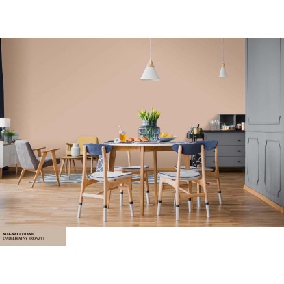 Emulsja Magnat Ceramic w kolorze delikatny bronzyt to ceramiczna farba trzeciej generacji marki Śnieżka. Unikalna formuła emulsji Magnat daje jej ponadprzeciętne parametry odporności na wielokrotne zmywanie i szorowanie na mokro. Do czyszczenia można używać dezynfektantów, gdyż emulsja ta jest odporna na środki czyszczące. Powierzchnie pokryte tą farbą są plamoodporne, nie absorbują zabrudzeń i trudnych plam np. z wina, kawy, ketchupu, oleju, pisaków wodnych, kredek itp.
