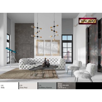 Emulsja Magnat Ceramic w kolorze grafitowy antracyt to ceramiczna farba trzeciej generacji marki Śnieżka. Unikalna formuła emulsji Magnat daje jej ponadprzeciętne parametry odporności na wielokrotne zmywanie i szorowanie na mokro. Do czyszczenia można używać dezynfektantów, gdyż emulsja ta jest odporna na środki czyszczące. Powierzchnie pokryte tą farbą są plamoodporne, nie absorbują zabrudzeń i trudnych plam np. z wina, kawy, ketchupu, oleju, pisaków wodnych, kredek itp.