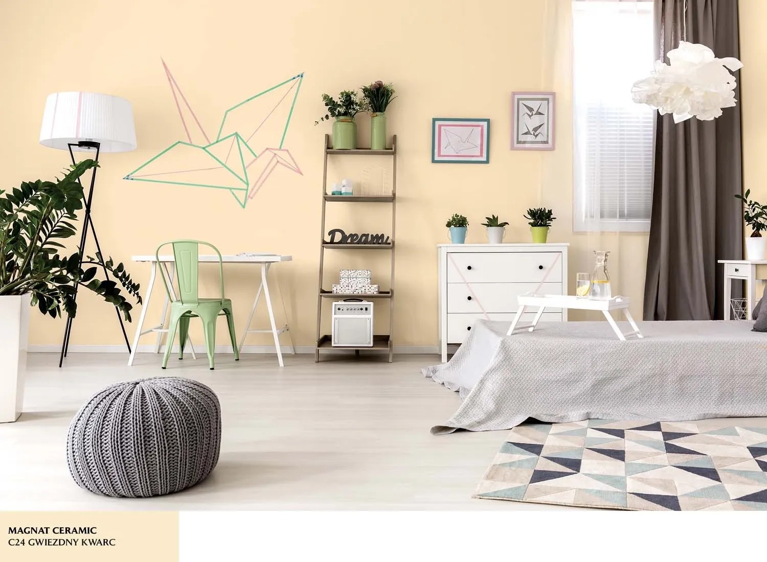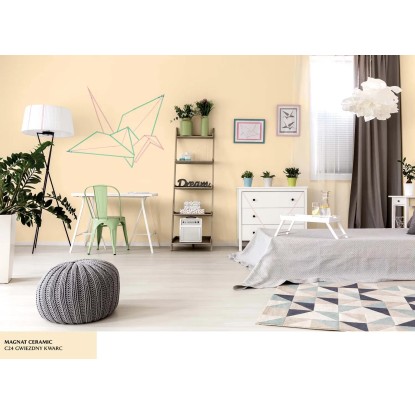 Emulsja Magnat Ceramic w kolorze gwiezdny kwarc to ceramiczna farba trzeciej generacji marki Śnieżka. Unikalna formuła emulsji Magnat daje jej ponadprzeciętne parametry odporności na wielokrotne zmywanie i szorowanie na mokro. Do czyszczenia można używać dezynfektantów, gdyż emulsja ta jest odporna na środki czyszczące. Powierzchnie pokryte tą farbą są plamoodporne, nie absorbują zabrudzeń i trudnych plam np. z wina, kawy, ketchupu, oleju, pisaków wodnych, kredek itp.