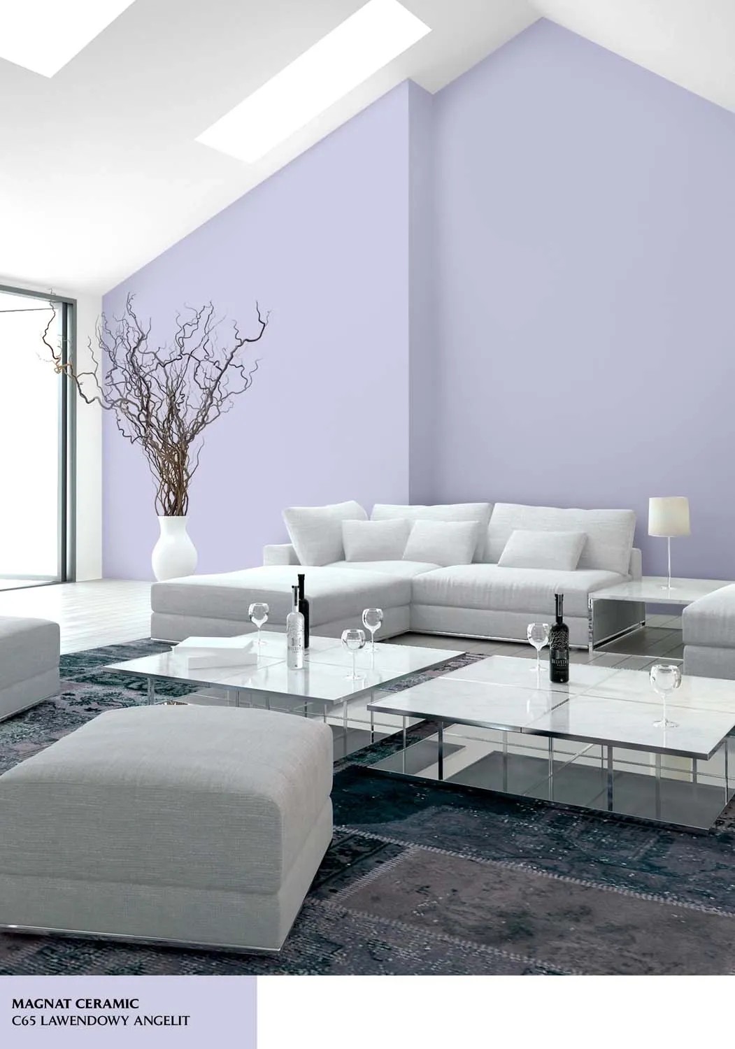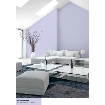 Emulsja Magnat Ceramic w kolorze lawendowy angelit to ceramiczna farba trzeciej generacji marki Śnieżka. Unikalna formuła emulsji Magnat daje jej ponadprzeciętne parametry odporności na wielokrotne zmywanie i szorowanie na mokro. Do czyszczenia można używać dezynfektantów, gdyż emulsja ta jest odporna na środki czyszczące. Powierzchnie pokryte tą farbą są plamoodporne, nie absorbują zabrudzeń i trudnych plam np. z wina, kawy, ketchupu, oleju, pisaków wodnych, kredek itp.