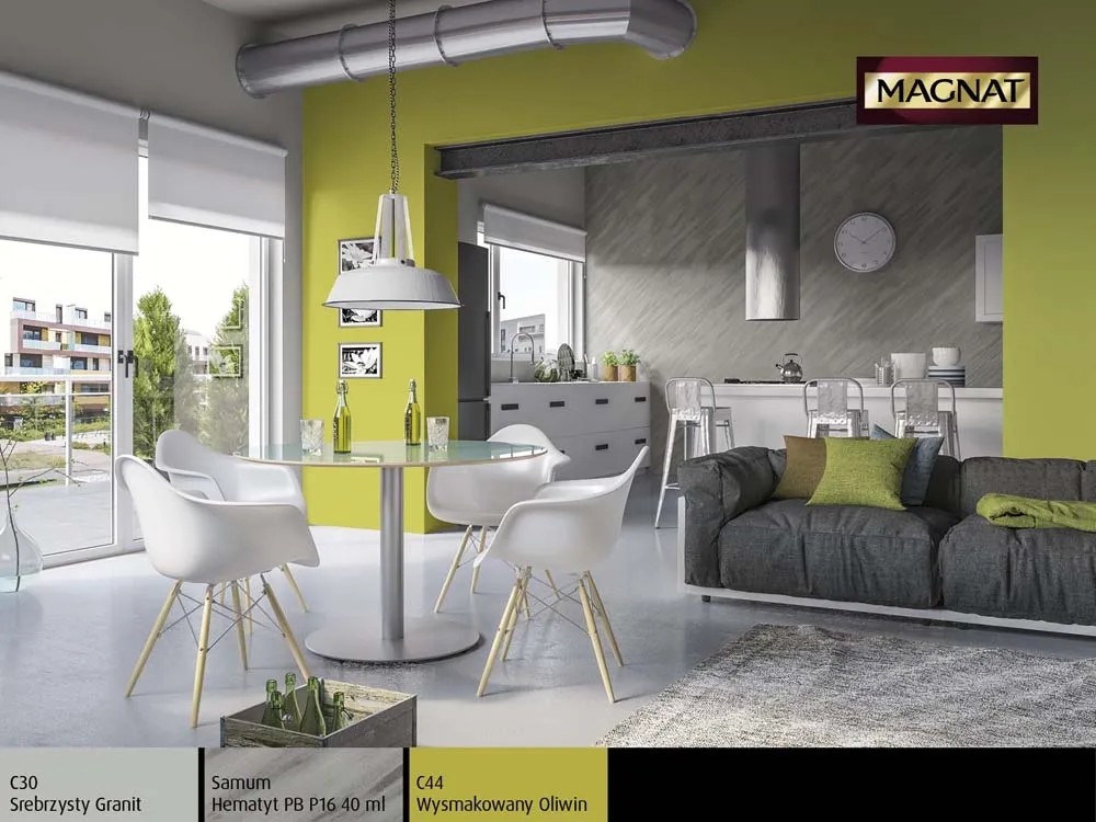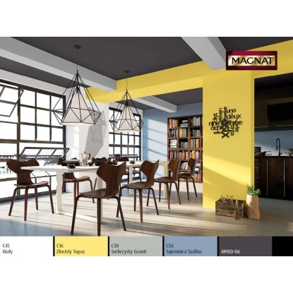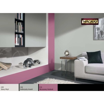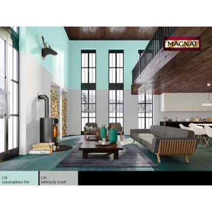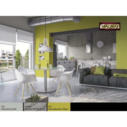 Emulsja Magnat Ceramic w kolorze srebrzysty granit to ceramiczna farba trzeciej generacji marki Śnieżka. Unikalna formuła emulsji Magnat daje jej ponadprzeciętne parametry odporności na wielokrotne zmywanie i szorowanie na mokro. Do czyszczenia można używać dezynfektantów, gdyż emulsja ta jest odporna na środki czyszczące. Powierzchnie pokryte tą farbą są plamoodporne, nie absorbują zabrudzeń i trudnych plam np. z wina, kawy, ketchupu, oleju, pisaków wodnych, kredek itp.