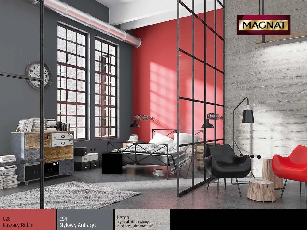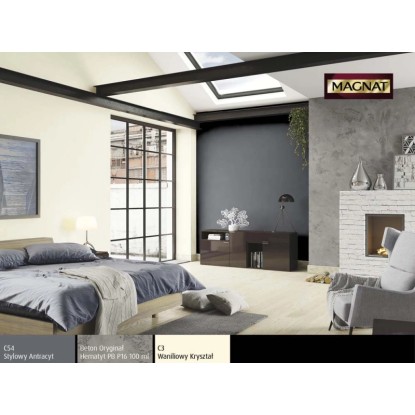 Emulsja Magnat Ceramic w kolorze stylowy antracyt to ceramiczna farba trzeciej generacji marki Śnieżka. Unikalna formuła emulsji Magnat daje jej ponadprzeciętne parametry odporności na wielokrotne zmywanie i szorowanie na mokro. Do czyszczenia można używać dezynfektantów, gdyż emulsja ta jest odporna na środki czyszczące. Powierzchnie pokryte tą farbą są plamoodporne, nie absorbują zabrudzeń i trudnych plam np. z wina, kawy, ketchupu, oleju, pisaków wodnych, kredek itp.