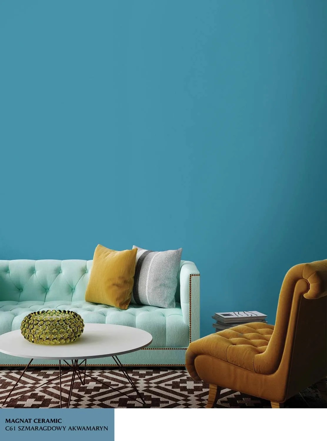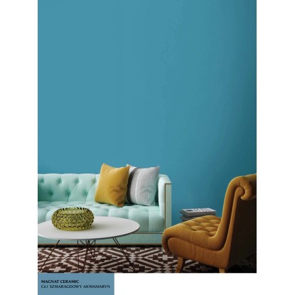 Emulsja Magnat Ceramic w kolorze szmaragdowy akwamaryn to ceramiczna farba trzeciej generacji marki Śnieżka. Unikalna formuła emulsji Magnat daje jej ponadprzeciętne parametry odporności na wielokrotne zmywanie i szorowanie na mokro. Do czyszczenia można używać dezynfektantów, gdyż emulsja ta jest odporna na środki czyszczące. Powierzchnie pokryte tą farbą są plamoodporne, nie absorbują zabrudzeń i trudnych plam np. z wina, kawy, ketchupu, oleju, pisaków wodnych, kredek itp.