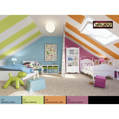 Emulsja Magnat Ceramic w kolorze zielony diament to ceramiczna farba trzeciej generacji marki Śnieżka. Unikalna formuła emulsji Magnat daje jej ponadprzeciętne parametry odporności na wielokrotne zmywanie i szorowanie na mokro. Do czyszczenia można używać dezynfektantów, gdyż emulsja ta jest odporna na środki czyszczące. Powierzchnie pokryte tą farbą są plamoodporne, nie absorbują zabrudzeń i trudnych plam np. z wina, kawy, ketchupu, oleju, pisaków wodnych, kredek itp.