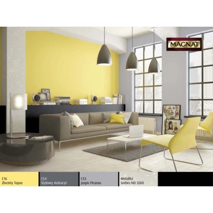 Emulsja Magnat Ceramic w kolorze złocisty topaz to ceramiczna farba trzeciej generacji marki Śnieżka. Unikalna formuła emulsji Magnat daje jej ponadprzeciętne parametry odporności na wielokrotne zmywanie i szorowanie na mokro. Do czyszczenia można używać dezynfektantów, gdyż emulsja ta jest odporna na środki czyszczące. Powierzchnie pokryte tą farbą są plamoodporne, nie absorbują zabrudzeń i trudnych plam np. z wina, kawy, ketchupu, oleju, pisaków wodnych, kredek itp.