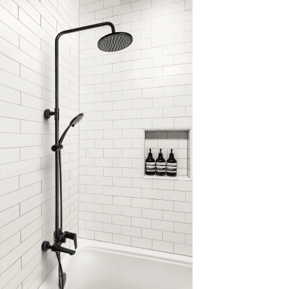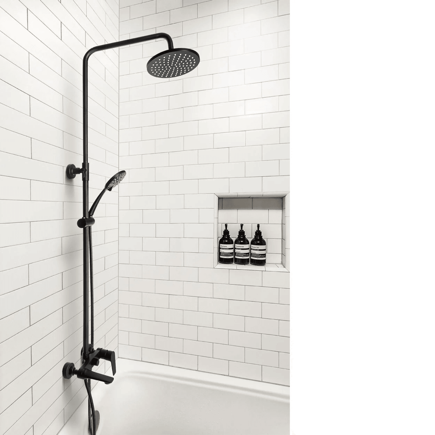Zestaw prysznicowy Dokos z baterią wannową w kolorze czarnym, firmy Invena.