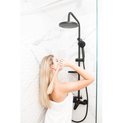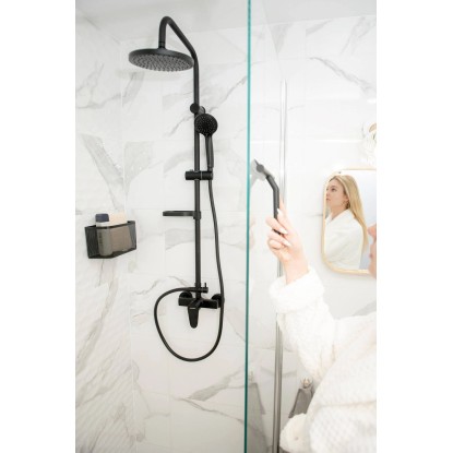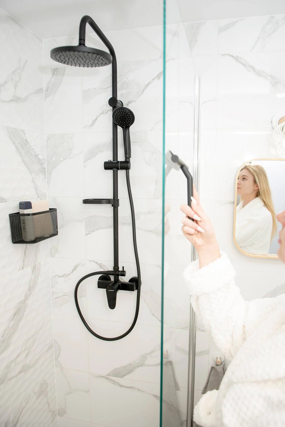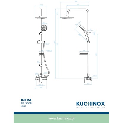 Kolumna prysznicowa Intra firmy Kuchinox to eleganckie i funkcjonalne rozwiązanie, które doskonale sprawdzi się w każdej łazience. Zestaw montowany na ścianie charakteryzuje się solidną konstrukcją, wykonaną z mosiądzu, stali oraz plastiku, a także posiada wąż natryskowy o długości 1500 mm, wykonany z gumy w oplocie stalowym. Słuchawka prysznicowa o wymiarach 220x95 mm oferuje trzy różne tryby strumienia wody: deszczowy, hydromasaż oraz mieszany, co pozwala dostosować prysznic do własnych preferencji. Deszczownia o średnicy 200 mm wykonana jest z plastiku, co czyni ją lekką, a system antykamień ułatwia jej czyszczenie. Kolumna ma wysokość 1025 mm, a długość drążka wynosi 950 mm, jednak nie ma możliwości regulacji wysokości deszczowni ani rozstawu mocowań. Produkt jest wyposażony w mydelniczkę, a przepływ wody wynosi 15 litrów na minutę. Kolumna prysznicowa Intra jest dostarczana z baterią, co czyni ją kompletnym zestawem gotowym do instalacji.