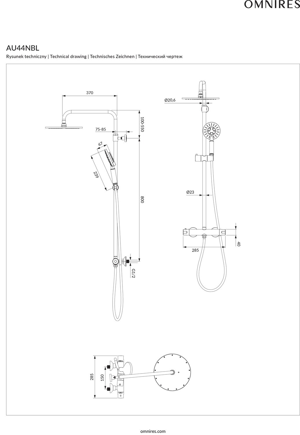 Omnires Kolumna prysznicowa Auron czarny