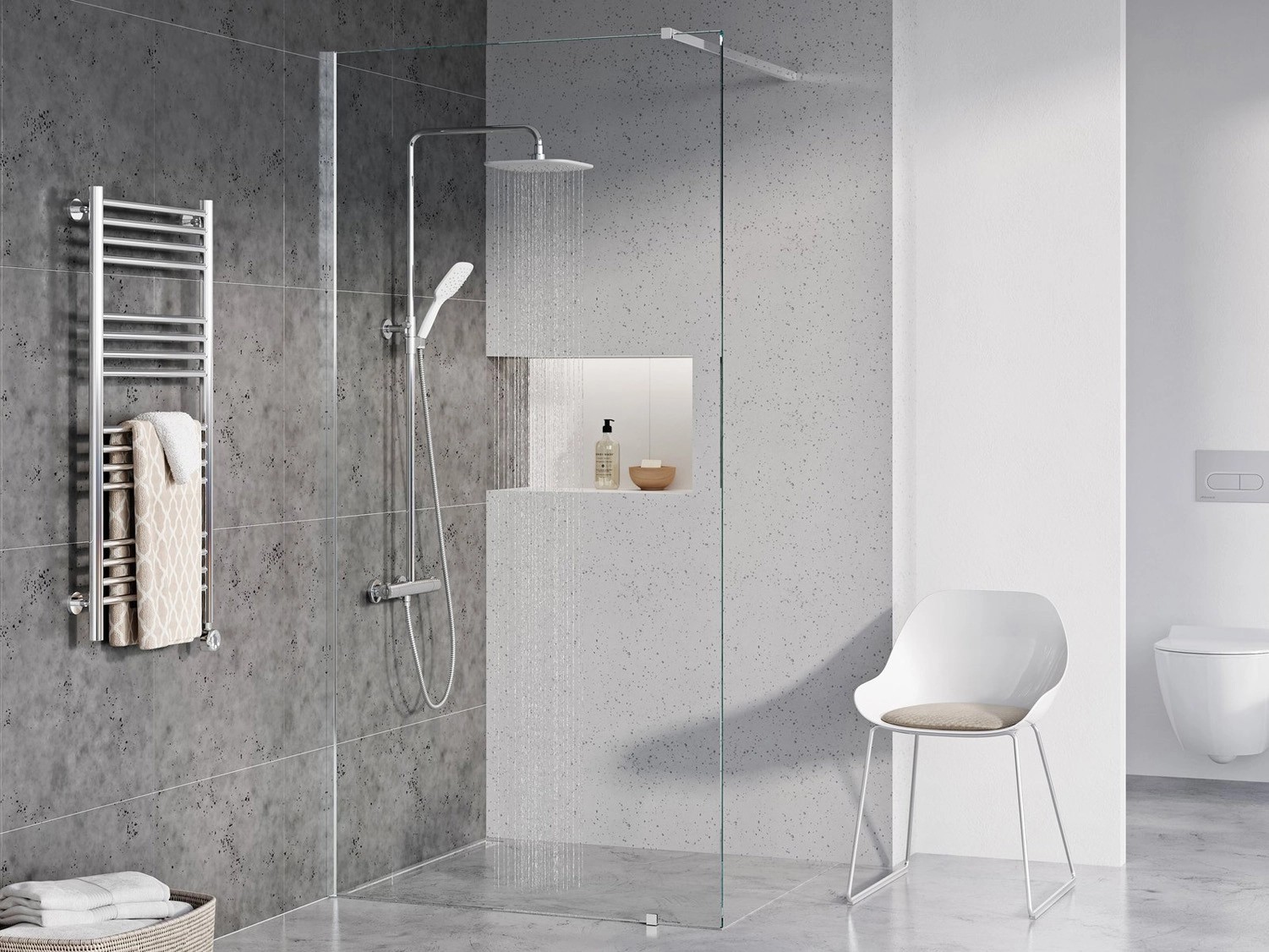 Kolumna termostatyczna z regulowaną wysokością 84-131 cm, głowica termostatyczna do idealnej temperatury wody.