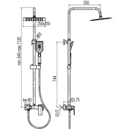 Kolumna prysznicowa Loft z niezwykle modną kwadratową deszczownicą, z możliwością regulacji wysokości w zakresie 84-112 cm będzie wyglądać doskonale zarówno w nowoczesnej łazience, jak i w klasycznie zaaranżowanym wnętrzu.