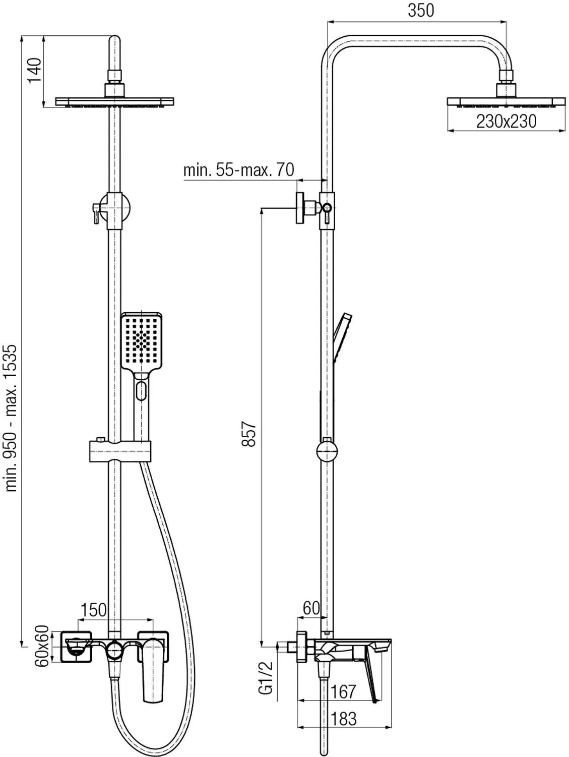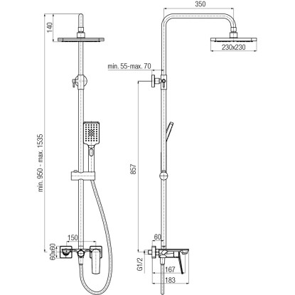 System integruje w sobie baterię mieszającą, deszczownicę górną, słuchawkę prysznicową oraz praktyczną wylewkę wannową. Taka konfiguracja zapewnia pełną funkcjonalność 2w1, gwarantując komfort zarówno podczas kąpieli w wannie, jak i pod prysznicem. Konstrukcja jest solidna i stanowi wyrazisty, estetyczny element łazienki.