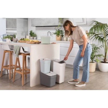 Zgrabny kosz do segregacji odpadów. Posiada praktyczną pokrywę, dzięki której śmieci nie wydzielają nieprzyjemnego zapachu i są sprytnie ukryte. Kosz posiada uchwyt ułatwiający jego przenoszenie.