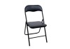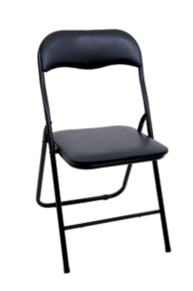 Krzesło składane, siedzisko i oparcie wykonano z materiału PCV w kolorze czarnym, wypełnione gąbką, stelaż w kolorze czarnym.