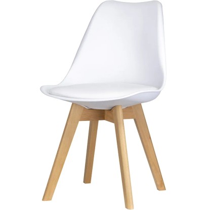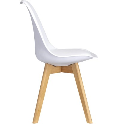Stabilne nogi krzesła wykonane zostały z litego drewna bukowego o naturalnym odcieniu.