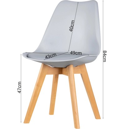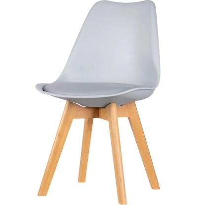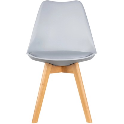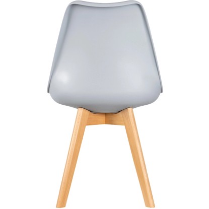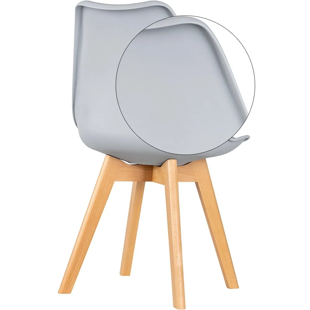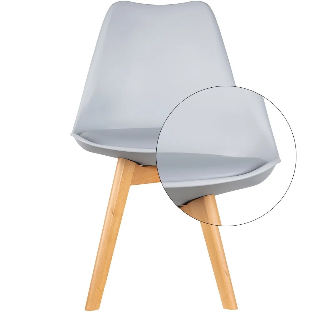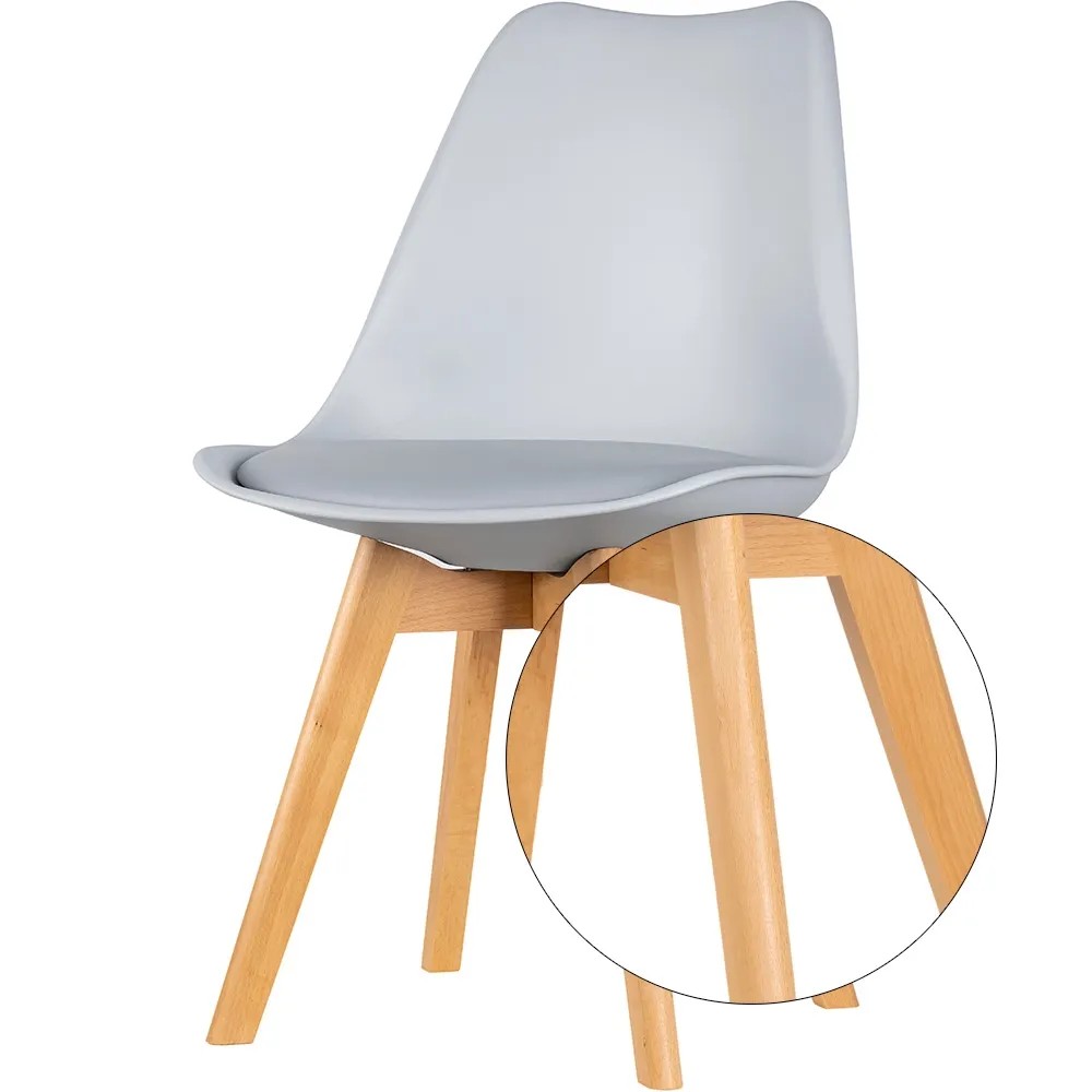 Stabilne nogi krzesła wykonane zostały z litego drewna bukowego o naturalnym odcieniu.