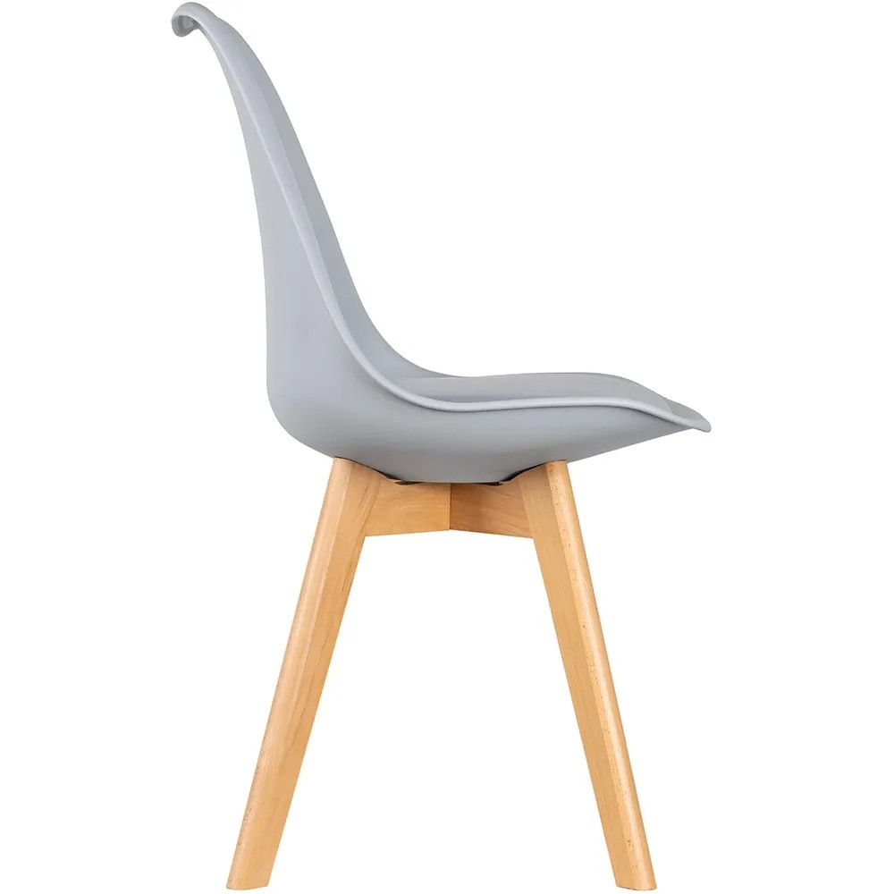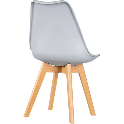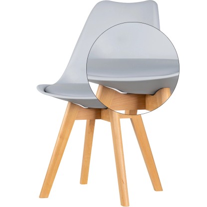 Stabilne nogi krzesła wykonane zostały z litego drewna bukowego o naturalnym odcieniu.