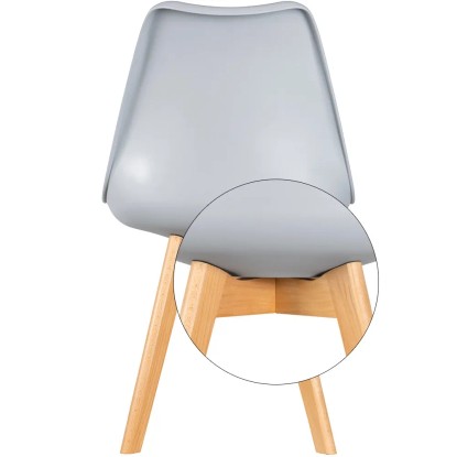 Stabilne nogi krzesła wykonane zostały z litego drewna bukowego o naturalnym odcieniu.