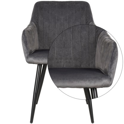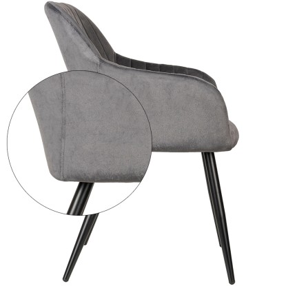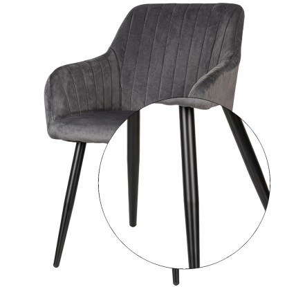 Krzesła wyróżniają się welurowym obiciem, które jest odporne na ścieranie. Miękki i przyjemny w dotyku materiał siedziska zapewnia wysoki komfort użytkowania.