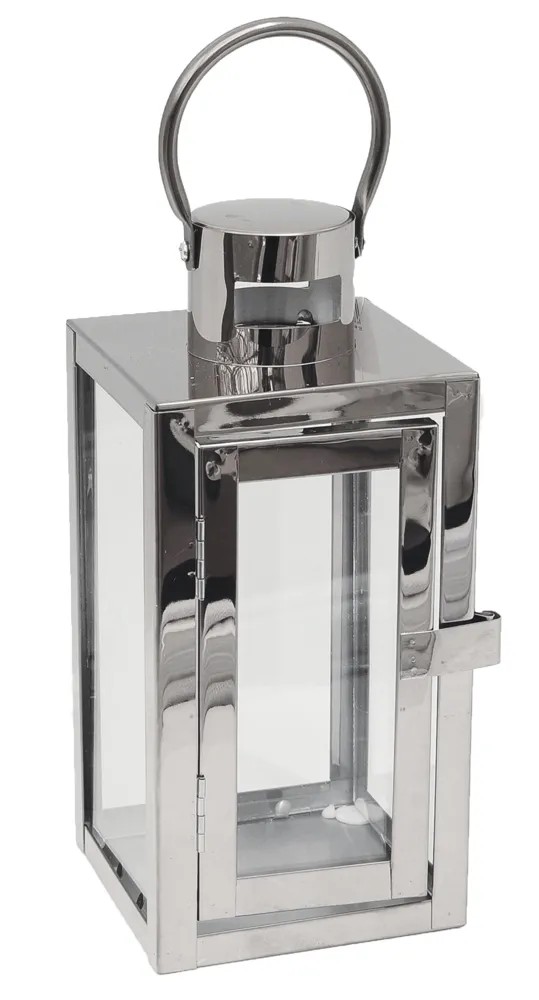 Wykonana z metalowej konstrukcji o szklanej zabudowie, ciekawa latarnia na świece. Idealnie nadaje się do dekoracji tarasu, balkonu. Występuje w trzech rozmiarach: mała 10x10x23 cm, średnia 14x14x39 cm, duża 18x18x50 cm. Dostępna w trzech modnych kolorach: miedziany, srebrny i czarny. Prosta forma sprawia, że pasuje do każdego wnętrza.