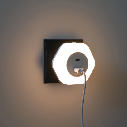Dzięki portom USB, lampa może też pełnić funkcje ładowarki do urządzeń mobilnych. Kanlux BOLA emituje łagodne światło nocne (4 lumeny) o ciepłobiałej temperaturze.
