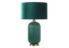 Karbowana ceramiczna podstawa w butelkowo-zielonym kolorze wprowadza do wnętrza harmonię i klasę, a złote, metalowe akcenty dodają całości wyrafinowanego charakteru. Aksamitny, tekstylny klosz w identycznym odcieniu zieleni delikatnie rozprasza światło, tworząc przytulną i uspokajającą atmosferę - idealną do pracy, relaksu lub jako dopełnienie sypialnianego nastroju. Kompozycja materiałów - ceramiki, metalu i tkaniny - podkreśla nowoczesny, ale i ponadczasowy styl lampy.