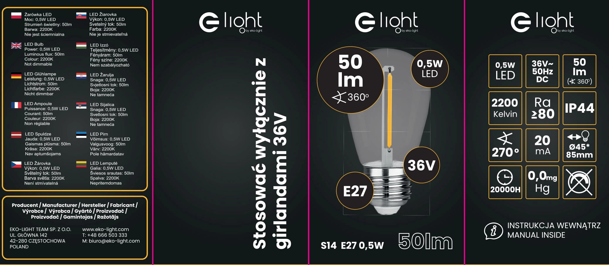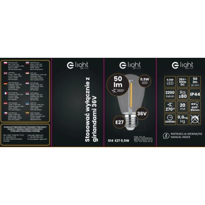 Eko-Light Żarówka S12 36V E27 0,5W 2200K 50lm IP44 filament