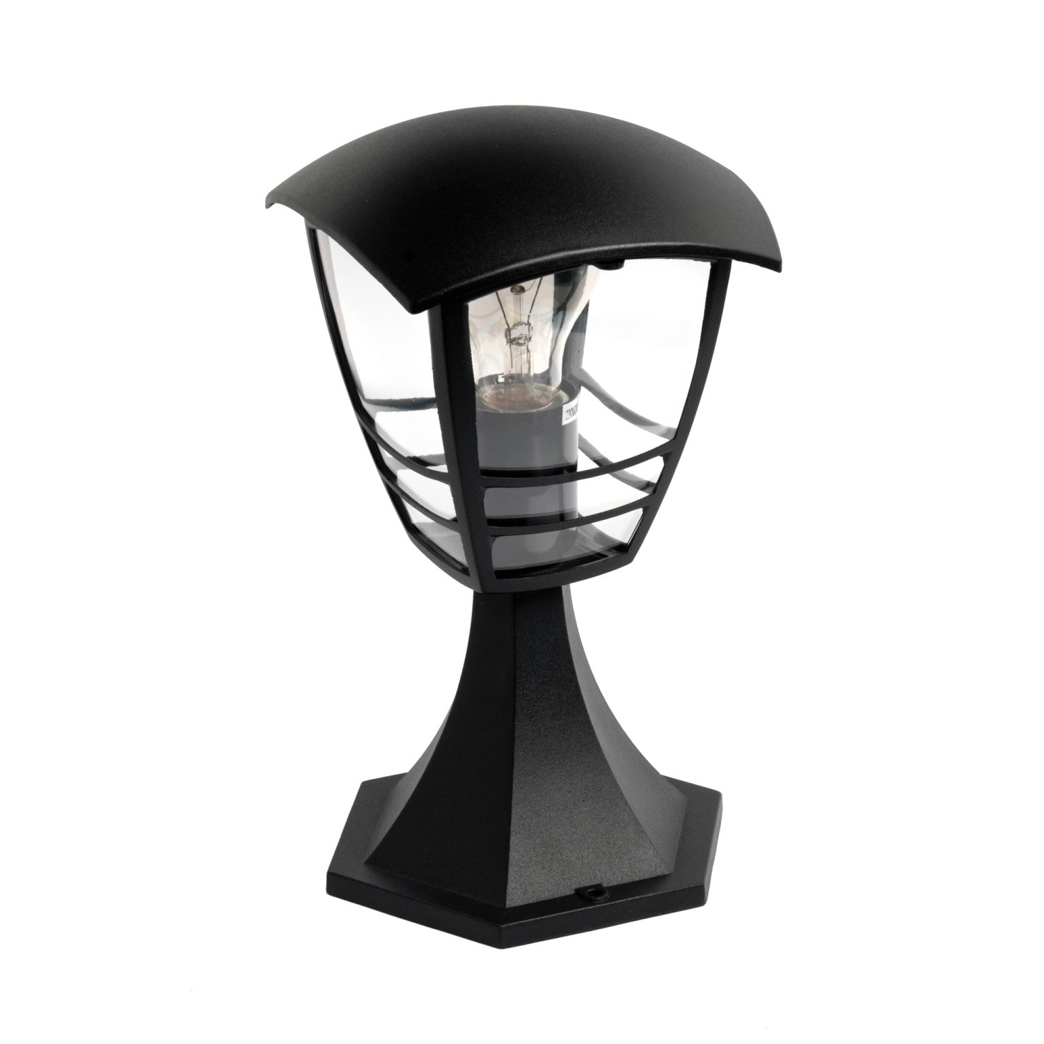 Wykonana z aluminium w kolorze czarnym stojąca lampa ogrodowa w stylu klasycznym.