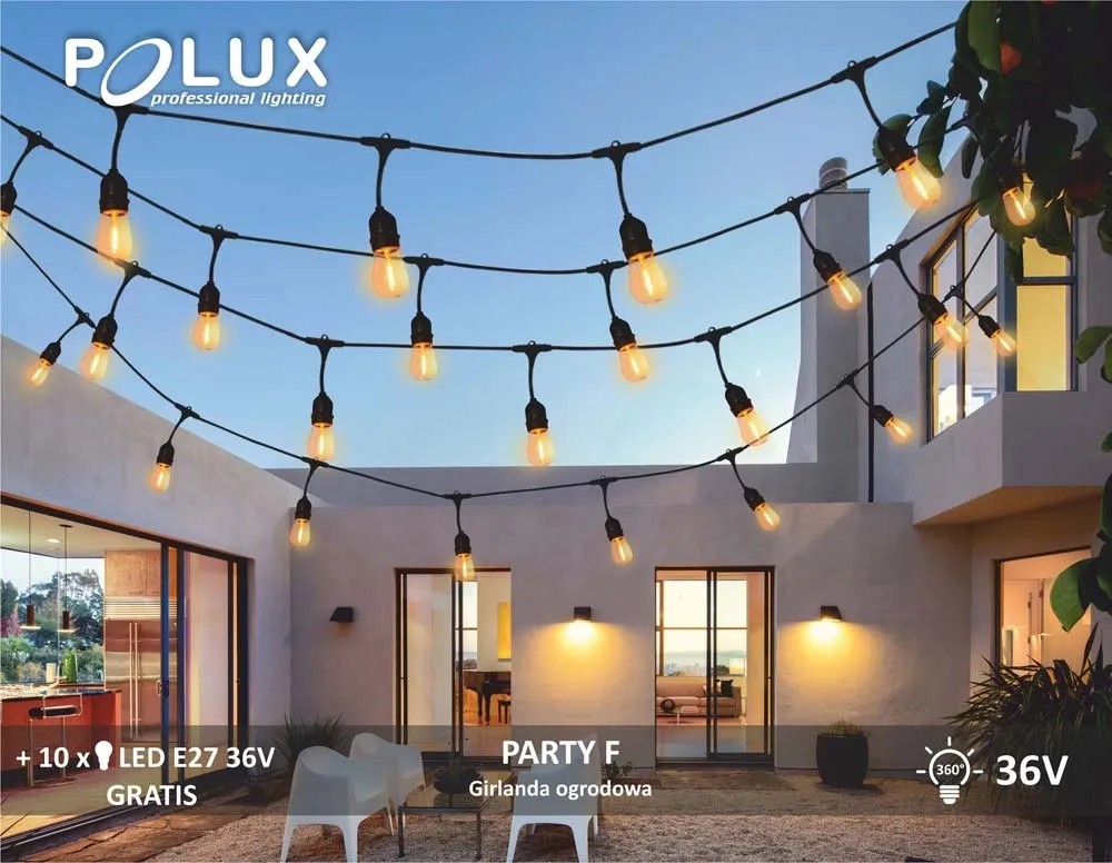 Girlandy to bardzo modny obecnie rodzaj oświetlenia. Trudno wyobrazić sobie spotkanie na świeżym powietrzu, bez właściwej oprawy. Coraz częściej stosowane są także jako codzienny element wystroju prywatnych posesji i mieszkań, stanowią ciekawy element aranżacji przydomowego ogrodu, tarasu czy balkonu. Przy wyborze girlandy warto kierować się zarówno walorami estetycznymi, jak i odpornością na warunki atmosferyczne. Produkt marki Polux doskonale łączy oba te aspekty.