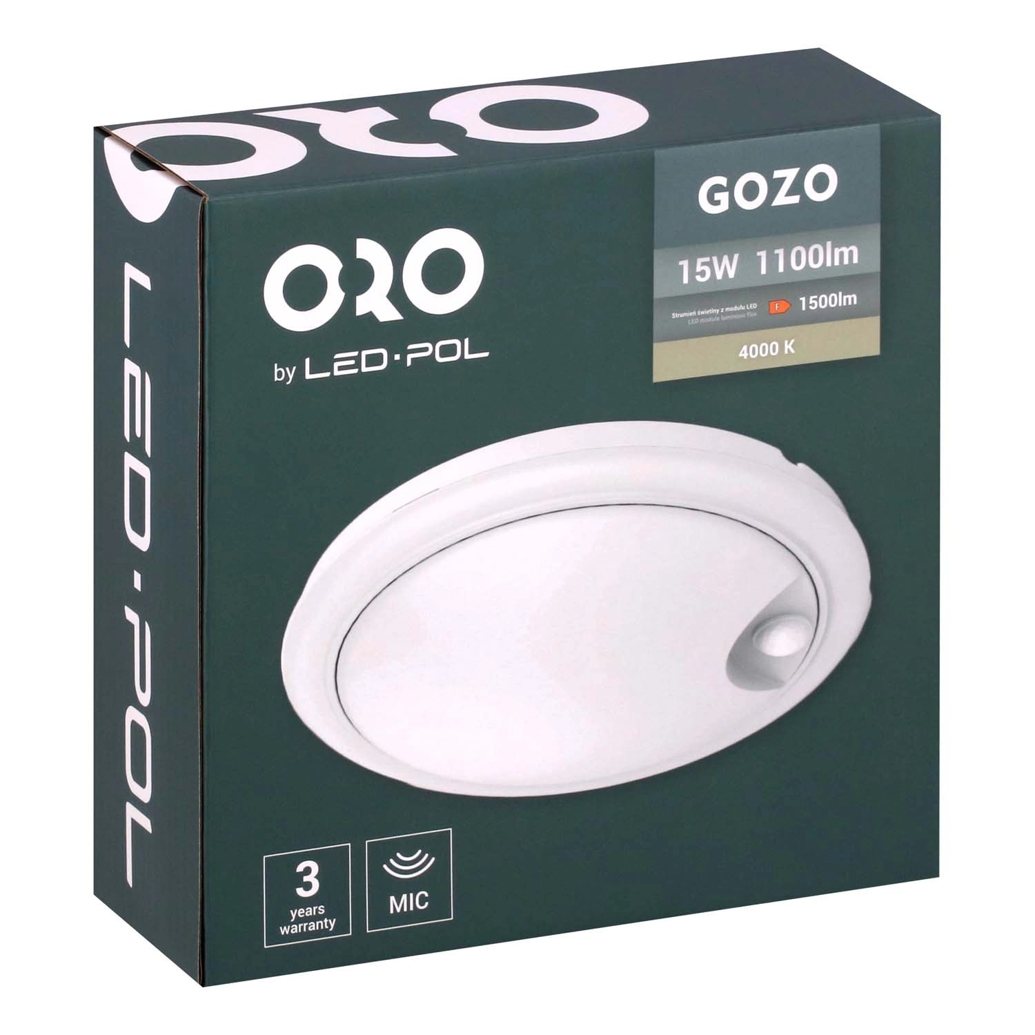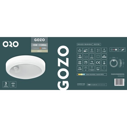 ORO Oprawa kanałowa GOZO czujnik PIR 15W 4000K 1100lm IP54 biała