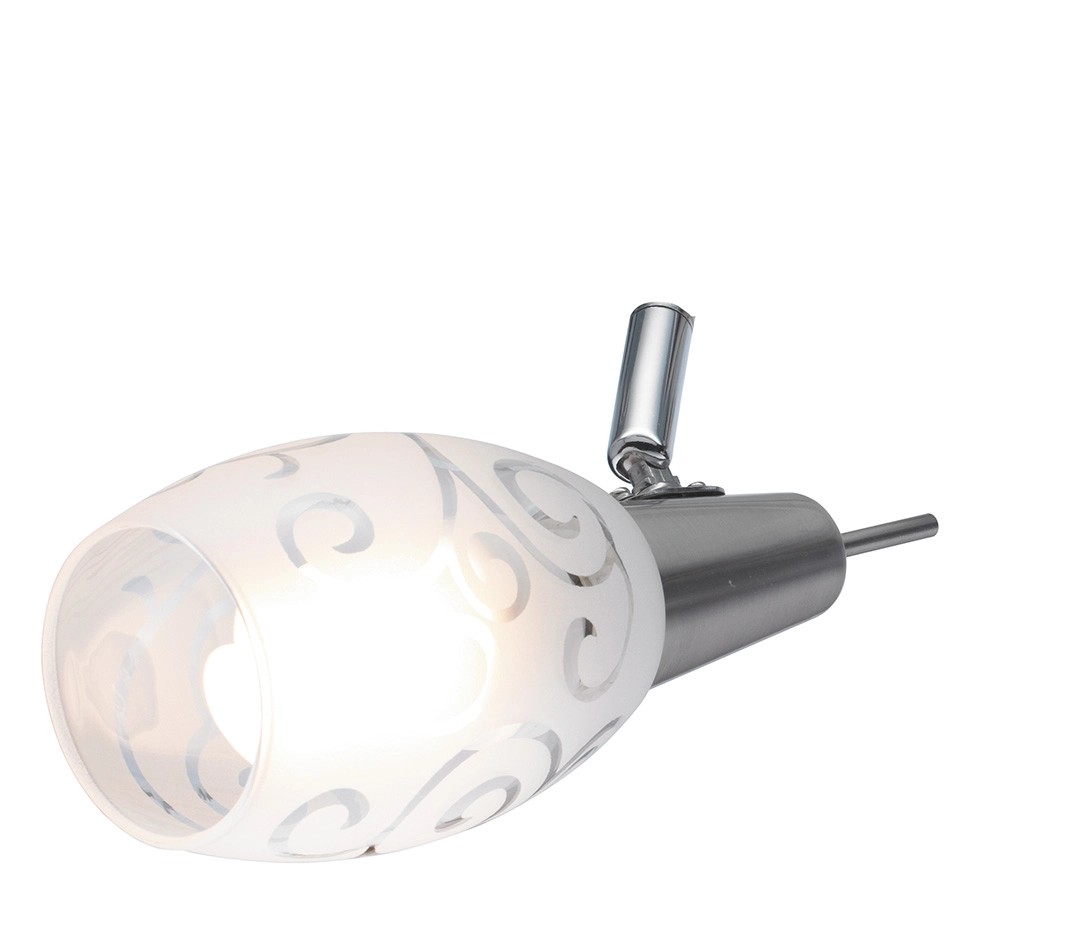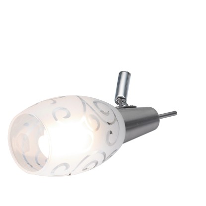 Oprawa jest niklowana matowa z chromowanymi detalami, ze szkłem dekoracyjnym i z żarówkami energooszczednymi, typ E14 11W, 440 lm, średnica ok. 28 cm.